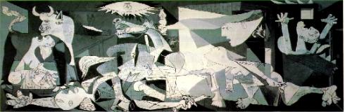 Guernica, natočená v tomtéž roce jako Paul Gauguin, pak sice stále přejímá Resnaisův původní stylový přístup k materiálu především v práci se střihem jej rozvinul již ve Van Goghovi, propojuje však navíc výtvarné umění, v tomto případě snímané malby, kresby a sochy Pabla Picassa a zejména jeho slavnou Guernicu z roku 1937, s konkrétní etapou lidské historie, s tragickými událostmi v průběhu Španělské občanské války, probíhající v letech 1936 – 1939. Od metonymického filmového portrétu osobnosti a světa van Gogha, odvozeného přímo z jeho výtvarné tvorby, postupuje Resnais k dílem metaforickému zpodobení bombardování baskické Guernicy z dubna 1937, kdy město napadla letadla německé Legie Condor a zaútočila na jeho bezbranné civilní obyvatelstvo.