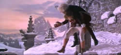 Asi modelovou prací s ateliérovým světlem a zároveň pocitem navození hrůzy je v mistrových rukou scéna západu slunce, kdy profesor Ambrosius uvízne v okýnku vedoucím do upírské ložnice a slunce mezitím neúprosně zapadá.